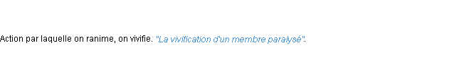 Ancienne signification éditée en 1835 pour le terme « vivification » par l’Académie Française.