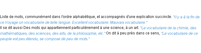 Ancienne signification éditée en 1798 pour le terme « vocabulaire » par l’Académie Française.