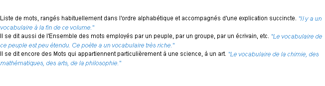 Signification éditée en 1932 pour le terme « vocabulaire » par l’Académie Française.