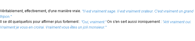 Définition académique pour le terme « vraiment » (parue en 1932).